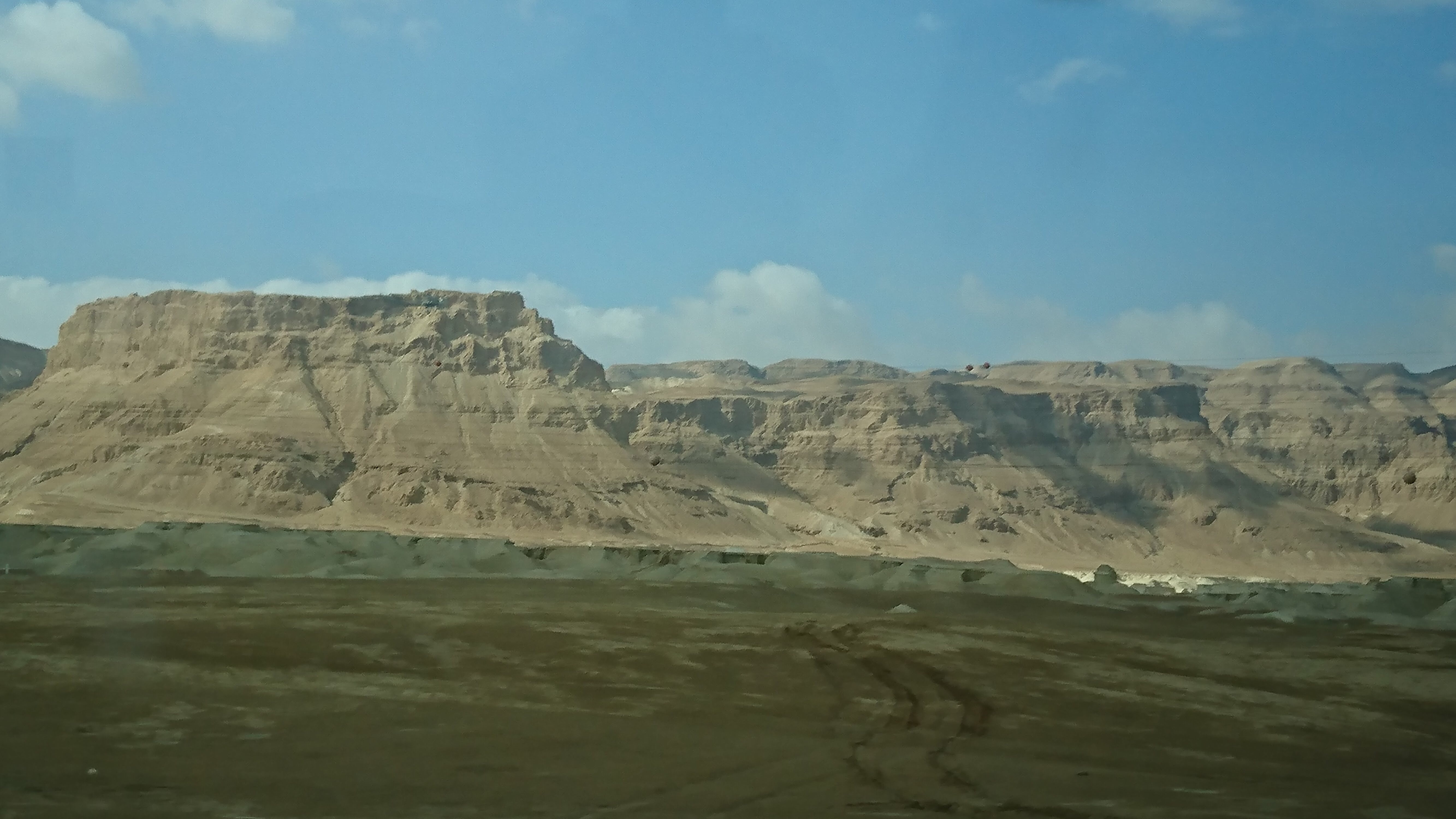 Da trenta chilometri vedo solo formazioni collinari dal colore bianco e che vira verso il rosso mattone. Nel fondo valle e di lato alla grande via di comunicazione alcuni tentativi di rendere fertile la terra, anche con serre. E comunque ben lontano da quanto gli israeliani hanno realizzato nella piana del Mare di Galilea.