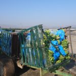 Inizia una zona che è un giardino di verde lussureggiante ed una miniera agricola. Entro nel recinto di un kibbuz fra filari chilometrici di piantagioni di banana, di arance e mandarini, avocado, pomodori, melanzane. Non mancano allevamenti di bovini, ovini ed avicoli. L’occhio mi ha permesso di contare, in transito, almeno venti camion che trasportano mangime. Dopo la festa bisogna rifornire gli allevamenti per la nuova settimana.