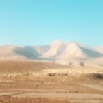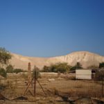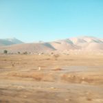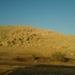 Da trenta chilometri vedo solo formazioni collinari dal colore bianco e che vira verso il rosso mattone. Nel fondo valle e di lato alla grande via di comunicazione alcuni tentativi di rendere fertile la terra, anche con serre. E comunque ben lontano da quanto gli israeliani hanno realizzato nella piana del Mare di Galilea.