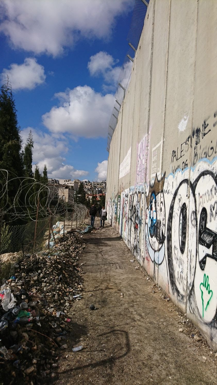 Siamo all’interno dello Stato di Israele e si entra in questo territorio senza soluzione di continuità. Eppure cambia la bandiera, la targa automobilistica, la lingua… entriamo in un territorio molto diverso da un punto di vista orografico, sociale, culturale ed economico. Anche Google Maps ne avverte la differenza è dà informazioni meno precise. L’ottimo servizio sui trasporti pubblici si interrompe e non comunica linee ed orari dei collegamenti fra i due territori. Anche se siamo all’interno dello stesso stato. La moneta è unica e le tasse prendono un’unica destinazione.