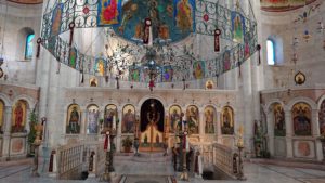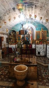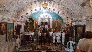 Di fronte all’iconostasi si trovano i due ingressi alla cripta con il suo pozzo profondo 32 metri, dal quale, con un certo sforzo, è possibile ancora oggi attingere acqua fresca.